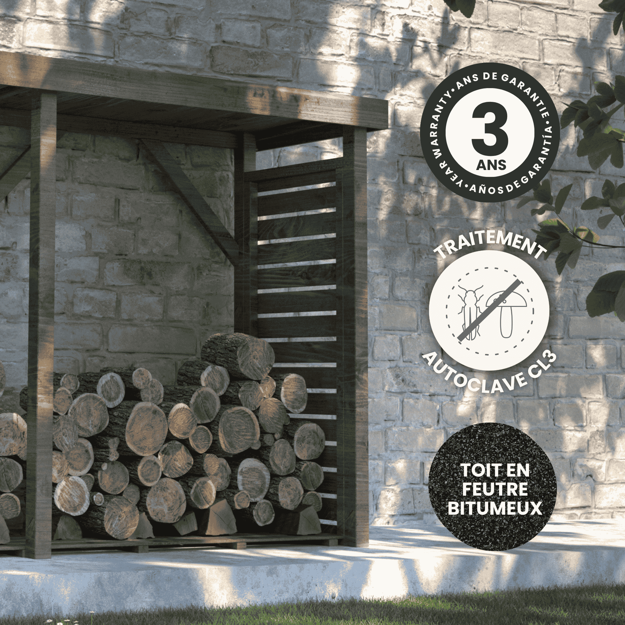 Abri bûches DALLAS XXL - 183 x 89,5 x 320 cm