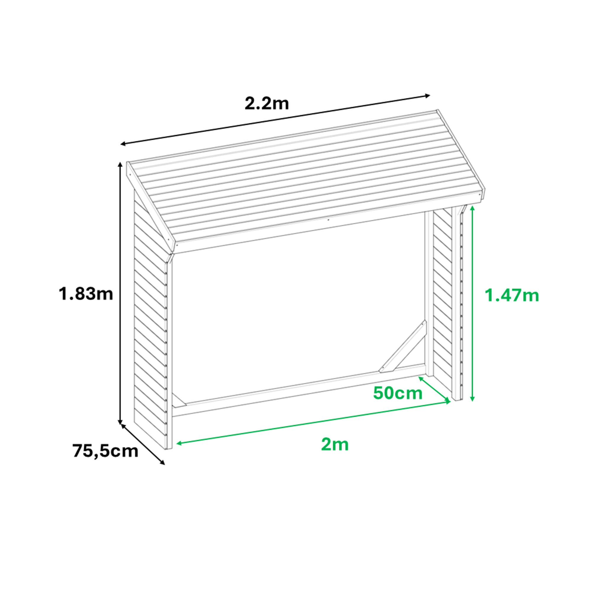- Stocke jusqu’à 2 stères de bois grâce à ses dimensions compactes et fonctionnelles