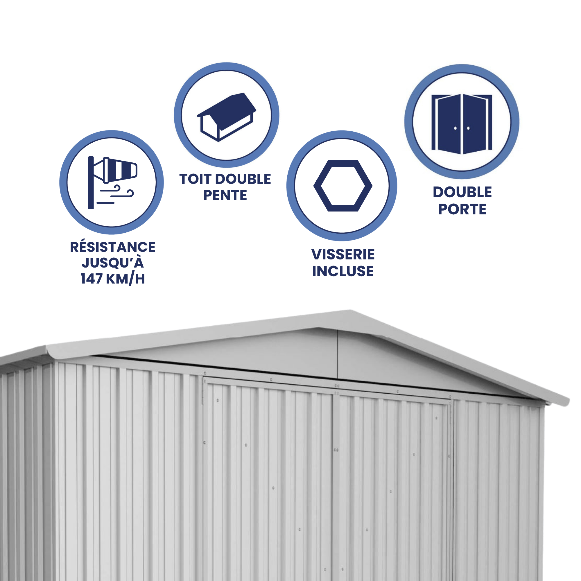 - Surface de 6,4 m² : idéal pour ranger vos équipements extérieurs