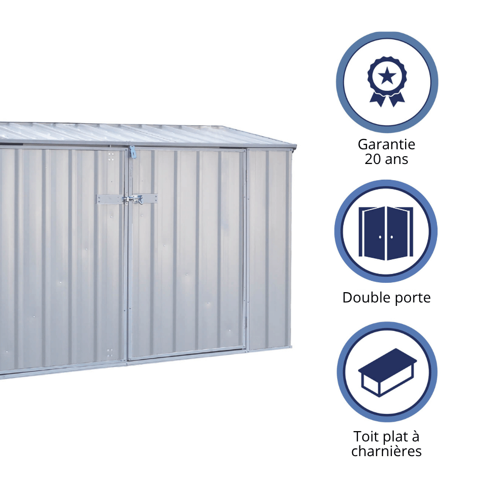 Conçu en acier galvanisé de haute qualité, l’abri FRASER garantit une résistance exceptionnelle aux intempéries, aux chocs et aux rayons UV. Sa finition élégante et son design contemporain en font un véritable élément de décoration pour votre jardin, tout en restant fonctionnel et discret pour ranger 2 vélos.