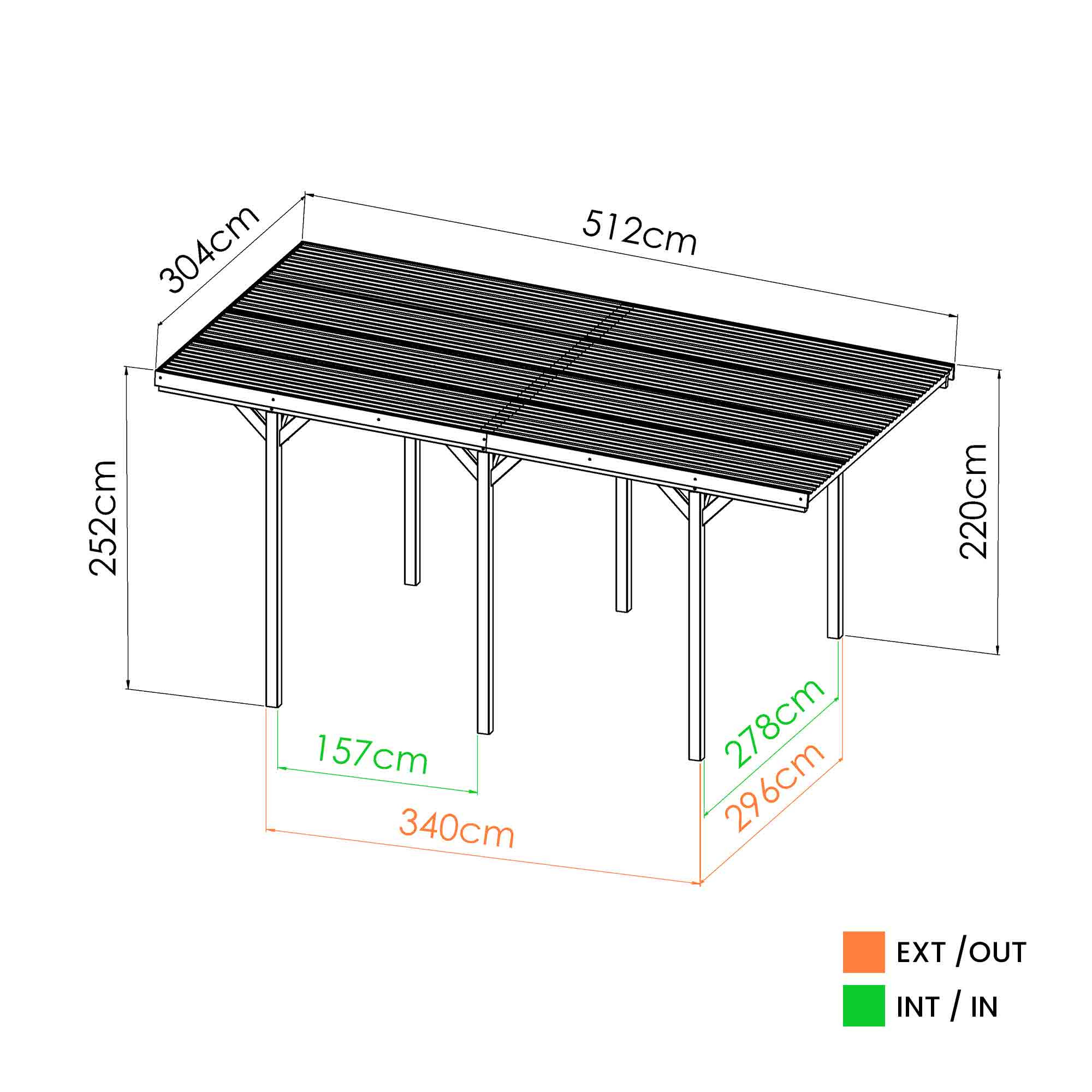 Dimension du carport (LxlxH) 304x512x252 cm