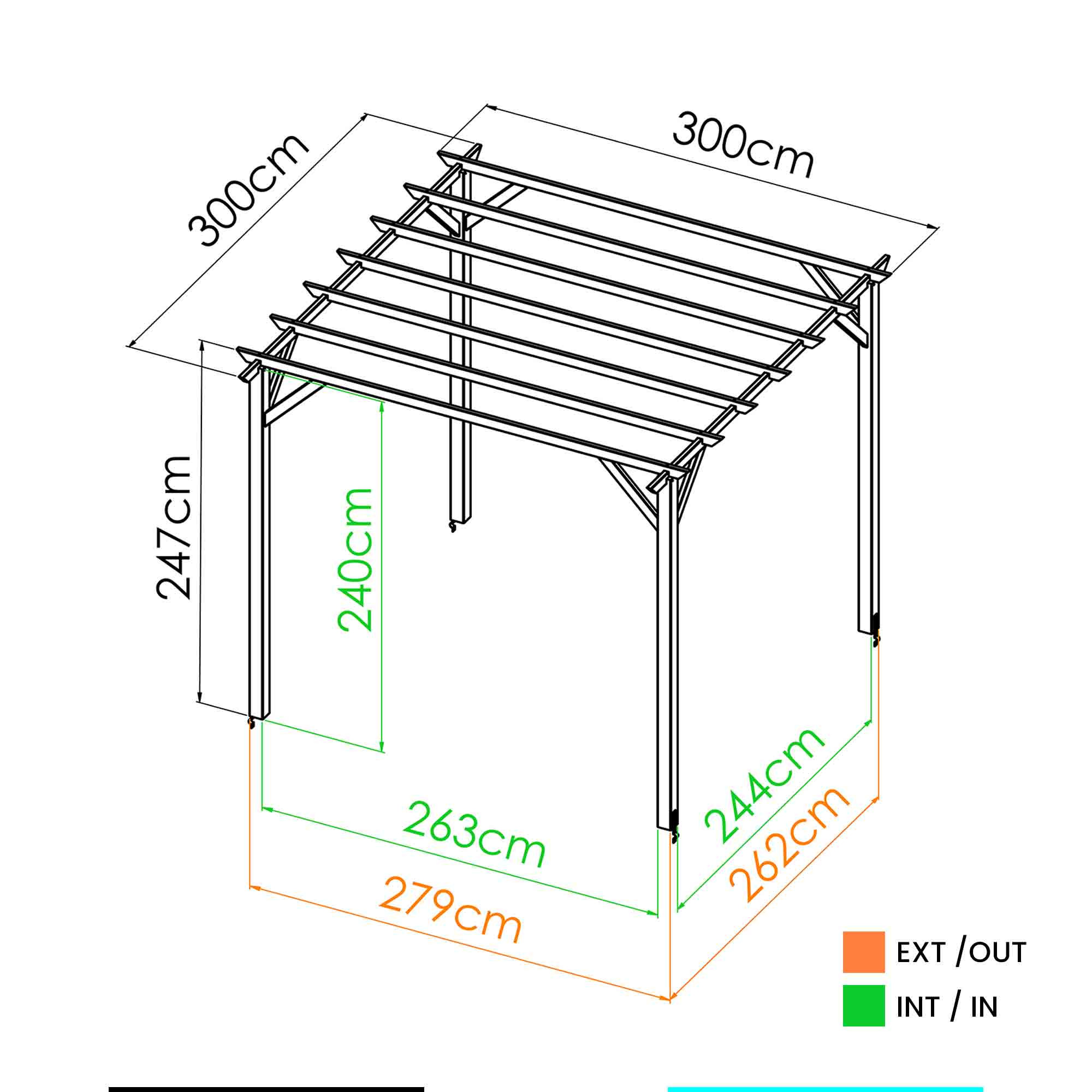 Pergola en bois ANCOLIE - 247 x 300 x 300 cm - 9m²