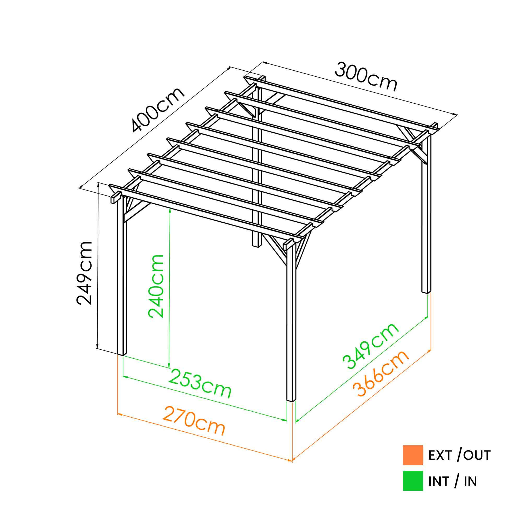 Pergola en bois MAGDALIE - 249 x 300 x 400 cm - 12 m²