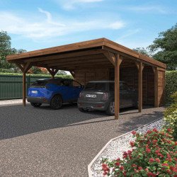 Carport bois 2 voitures 30,9 m² Victor Modern - sans poteau central