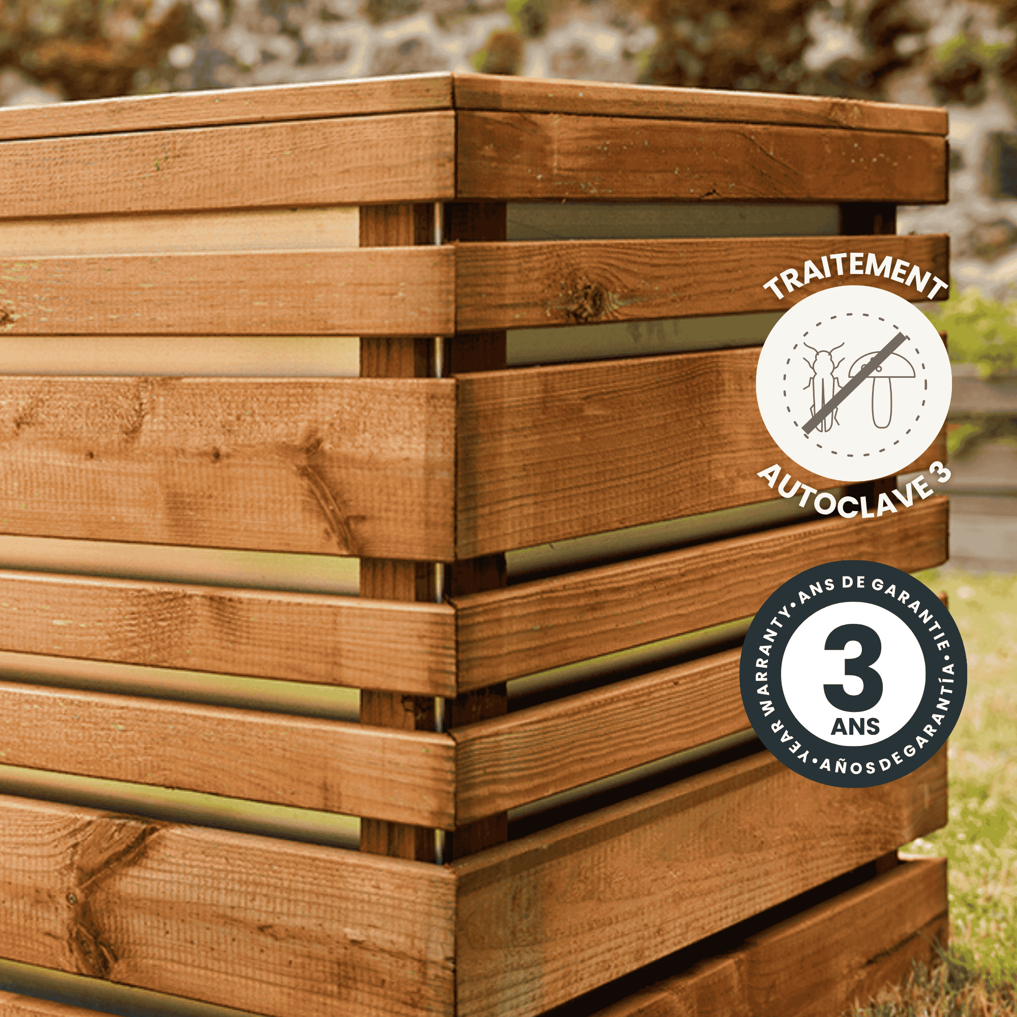 - Résistant aux intempéries grâce au traitement autoclave classe 3