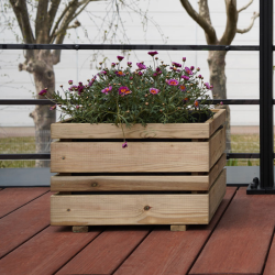 Ajoutez une touche moderne et raffinée à votre extérieur avec le bac à fleurs carré OSLO. Conçu en pin européen, il séduit par son design unique alternant des lames de deux largeurs différentes, pour un rendu élégant et contemporain. Sa taille compacte en fait une solution idéale pour les petits espaces comme les balcons ou terrasses, tout en offrant un bel espace de plantation.