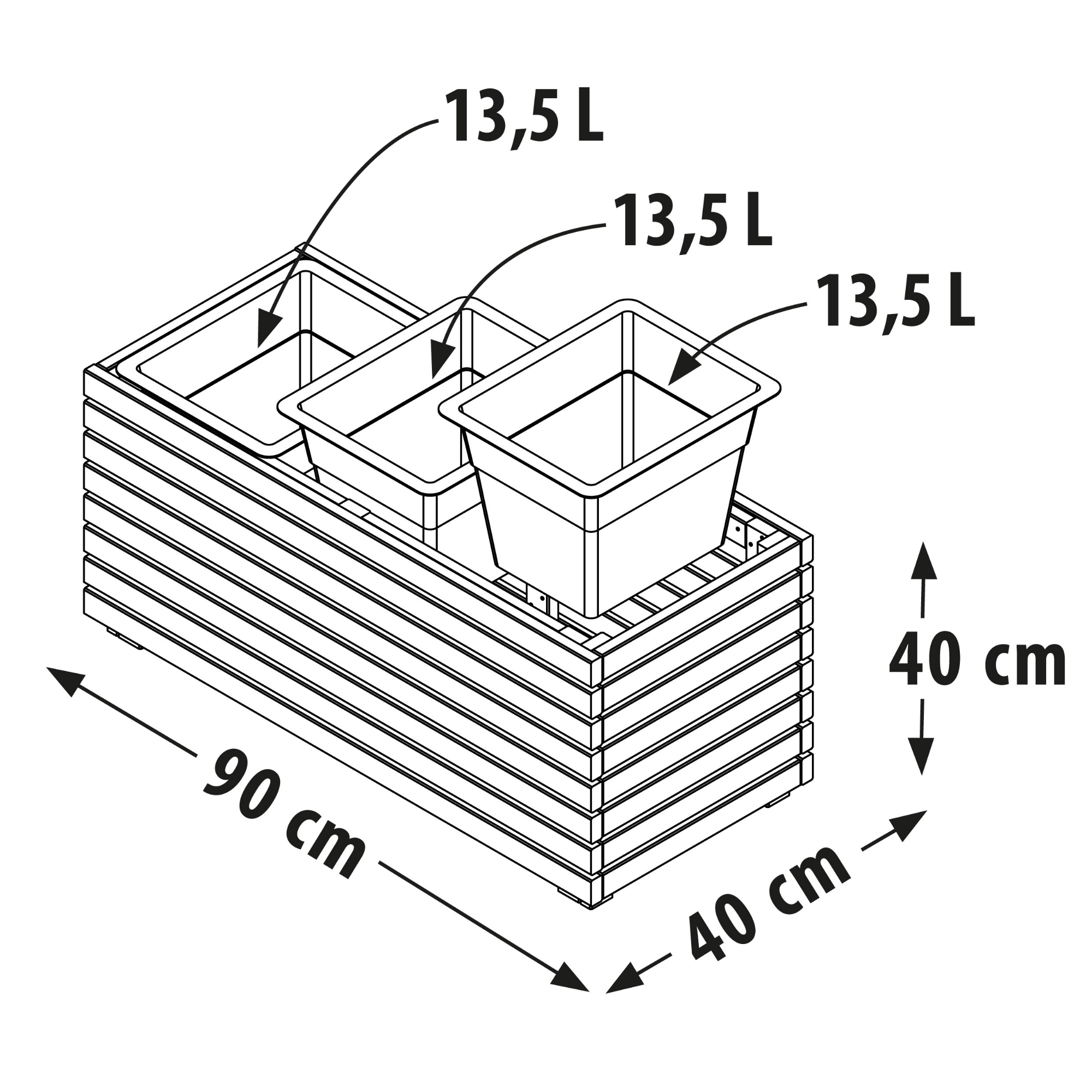 Bac à fleurs 3 pots Horizon - 90 x 39,4 x 40 cm