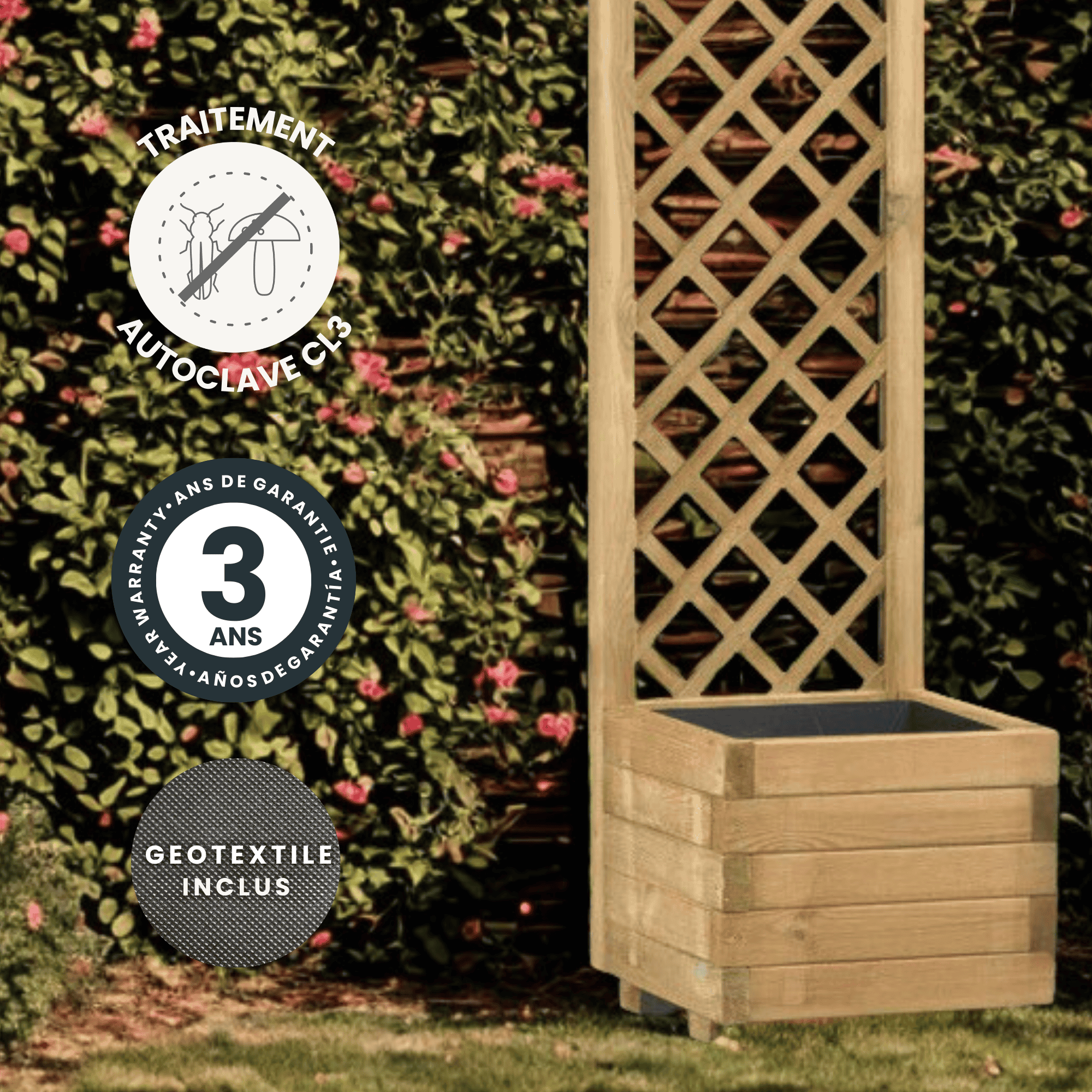 Bac à fleurs carré avec treillis droit 30L : praticité et charme naturel