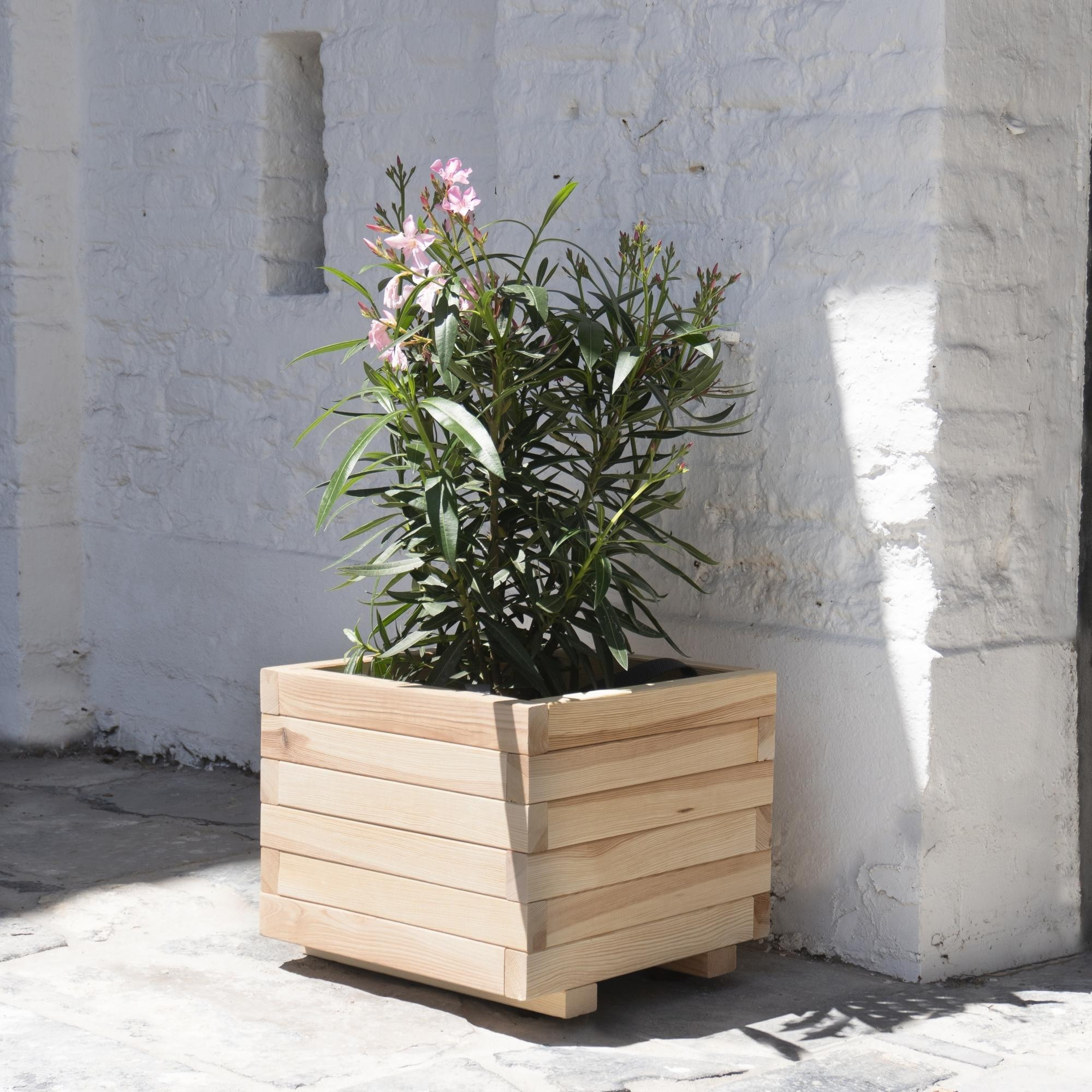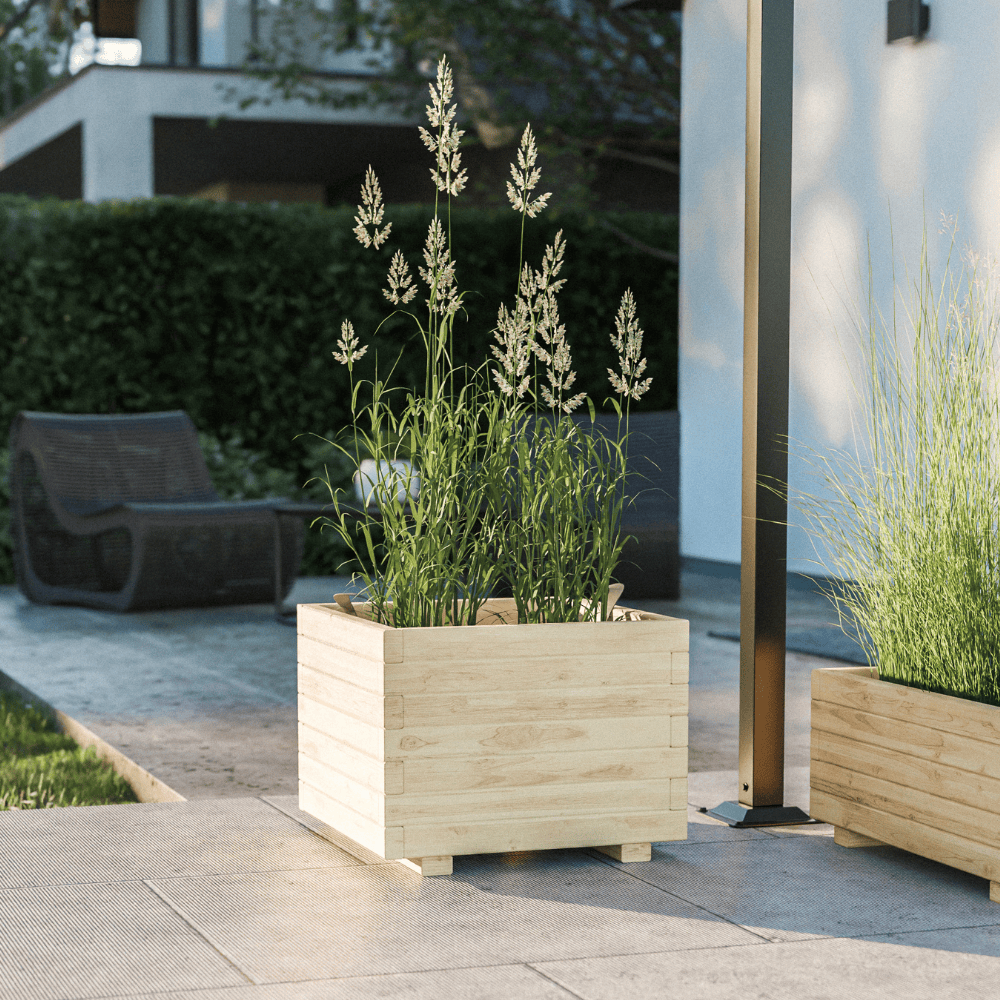 Bac à fleurs carré BARDANE en bois brut – Élégance et authenticité au naturel