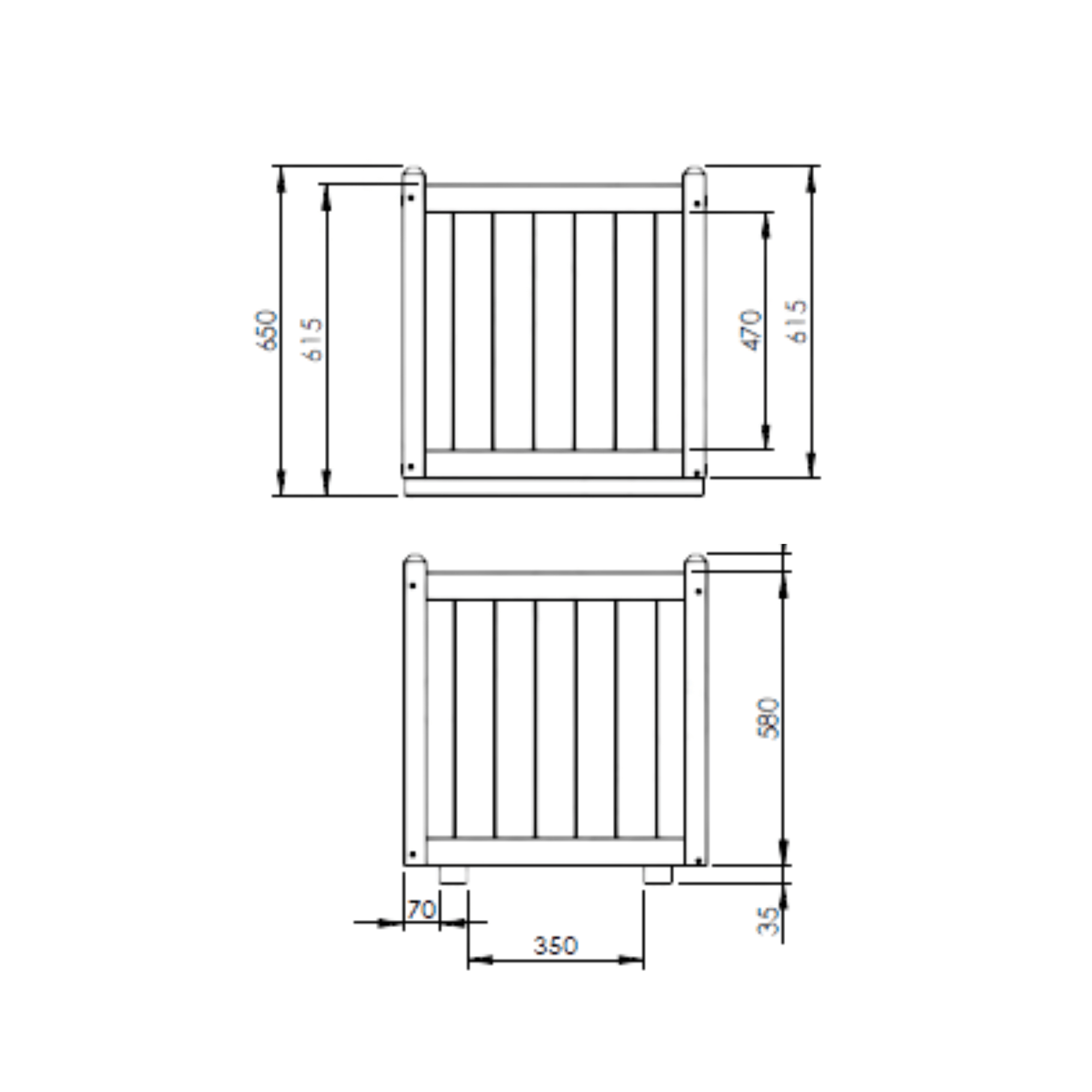 La qualité de fabrication est au rendez-vous : les lames verticales sont assemblées par clouage invisible, pour un rendu net et sans vis apparentes, tandis que les montants sont vissés pour une meilleure résistance. Grâce à ses deux pieds intégrés, ce bac bénéficie d'une stabilité optimale, même en extérieur.
