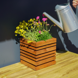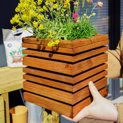 Le bac à fleurs carré LIGN Z allie design moderne et praticité, idéal pour jardin, terrasse ou balcon. Son bois européen teinté brun associé à un intérieur en acier galvanisé crée un effet bi-matière esthétique et protège le bois du contact direct avec l’eau. L’ensemble est certifié PEFC, garantissant une gestion responsable des forêts.