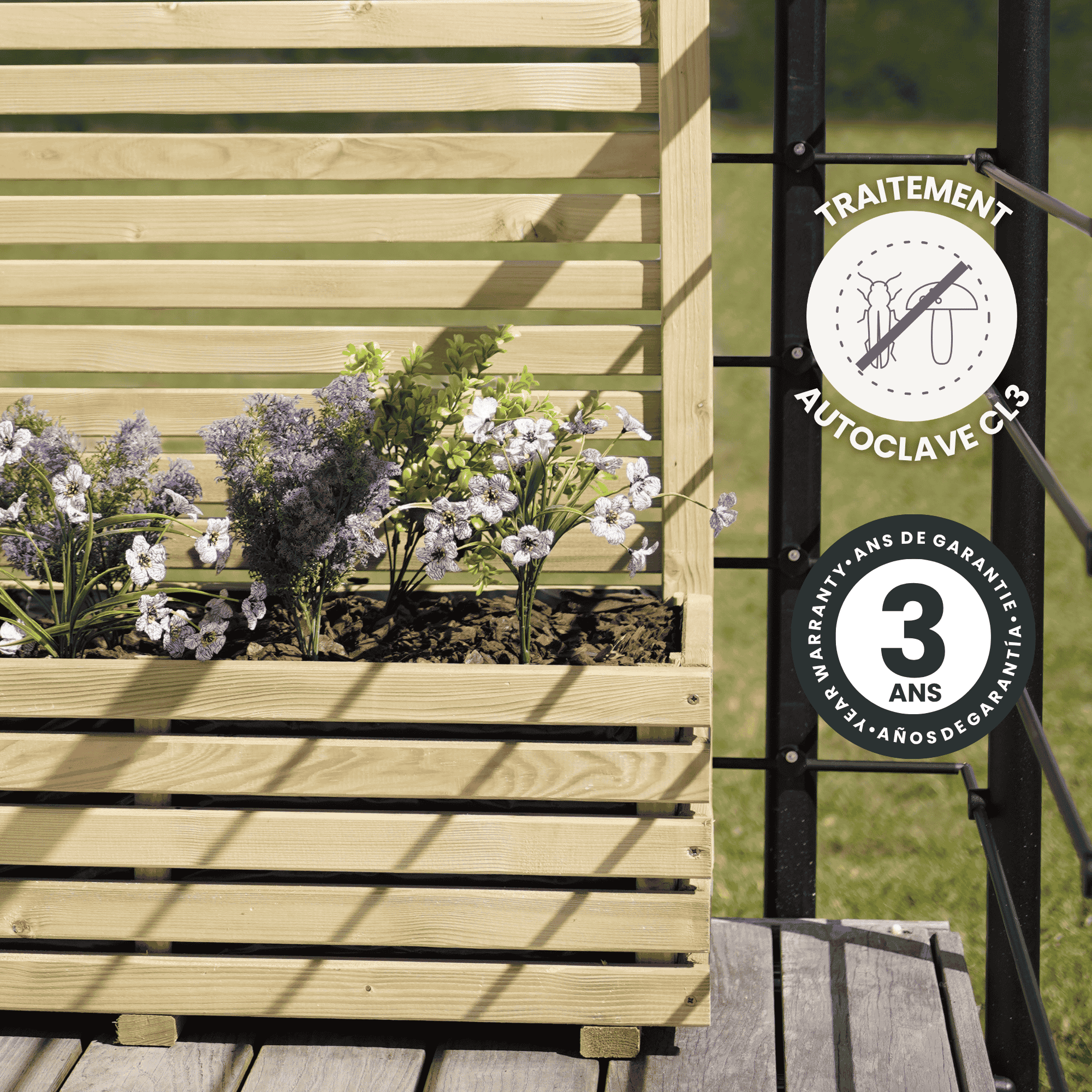 Le bac à fleurs occultant KÜB 60L allie intimité et style moderne pour sublimer votre balcon ou terrasse. Sa structure en bois composée de lames fines et soignées offre un design épuré et contemporain, tout en apportant une atmosphère naturelle et chaleureuse à vos espaces extérieurs. Grâce à son panneau occultant intégré, il protège efficacement des regards indiscrets, vous permettant de profiter pleinement de vos moments de détente.