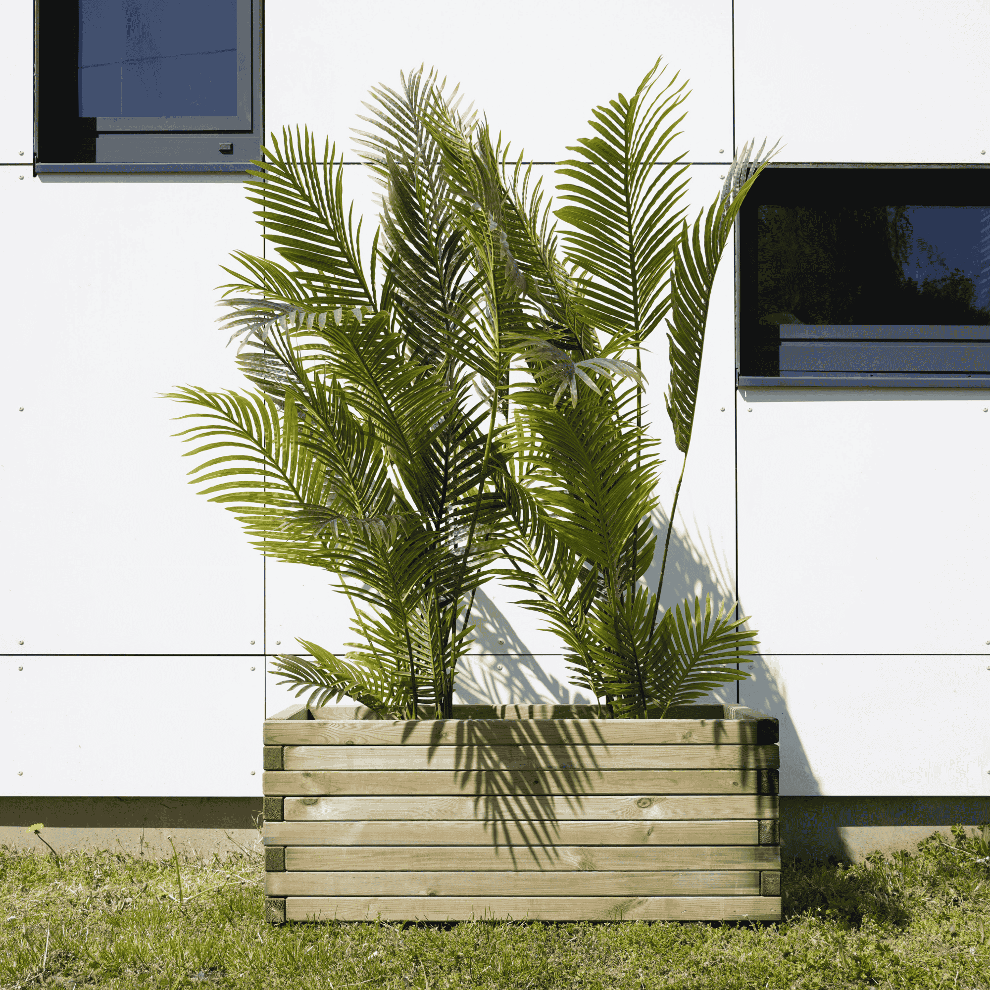 Fabriquée en pin européen certifié PEFC, cette jardinière de 143 litres allie design épuré, robustesse et fonctionnalité. Son bois épais de 7 cm lui confère une excellente solidité, idéale pour une utilisation durable en jardin, sur une terrasse ou un balcon.