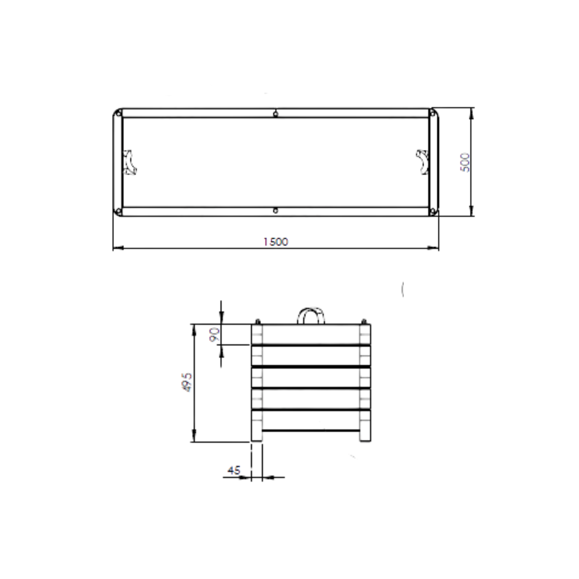 - Dimensions généreuses : 150 cm de largeur, 50 cm de profondeur, 50 cm de hauteur
