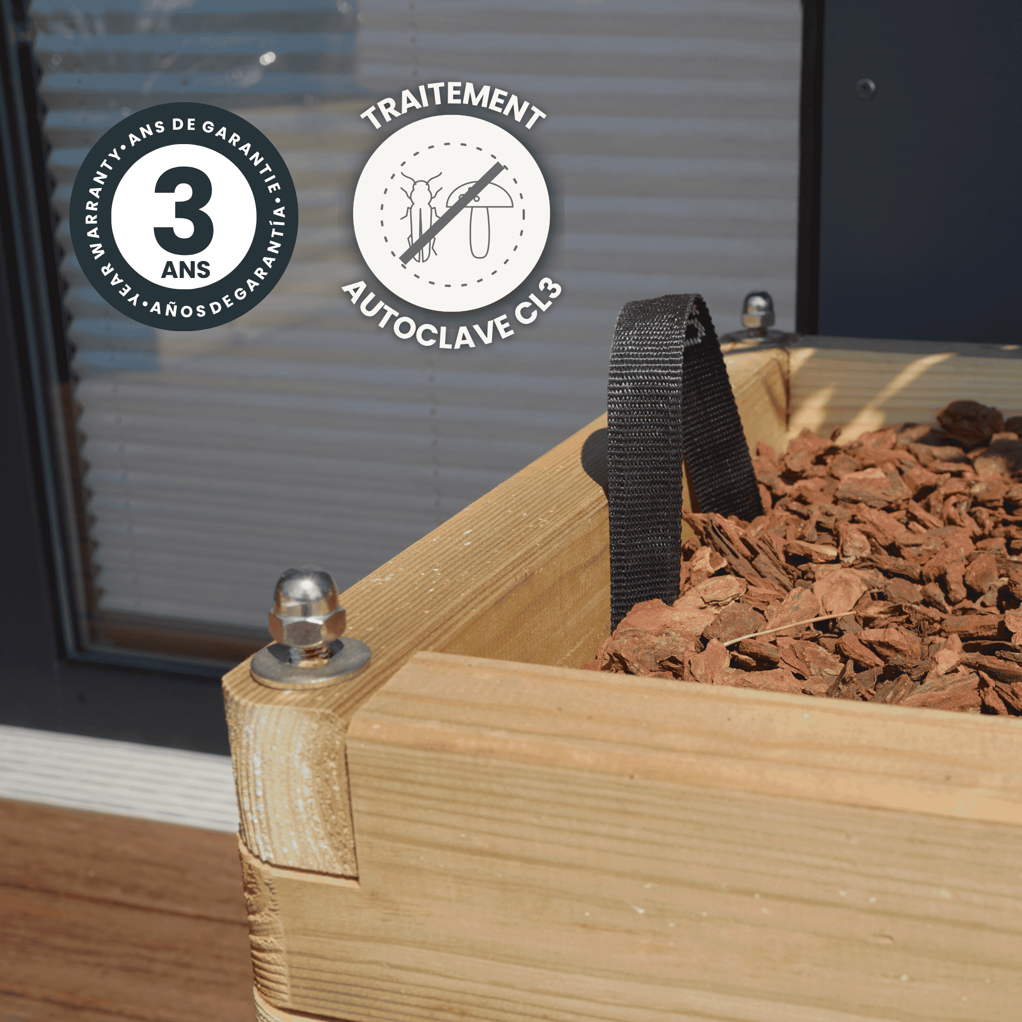 Détails de la garantie 3 ans contre les champignons (Basidiomycètes, pourriture cubique, fibreuse)