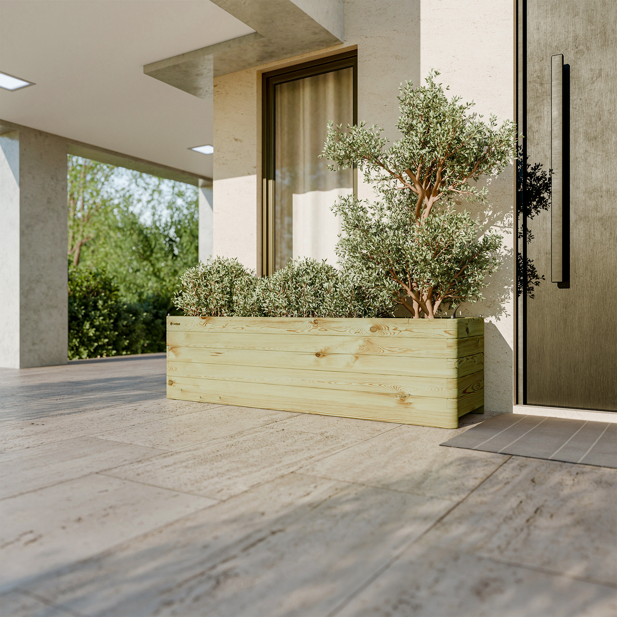 Bac à fleurs rectangulaire en bois Oléa - 180 x 50 x 50 cm
