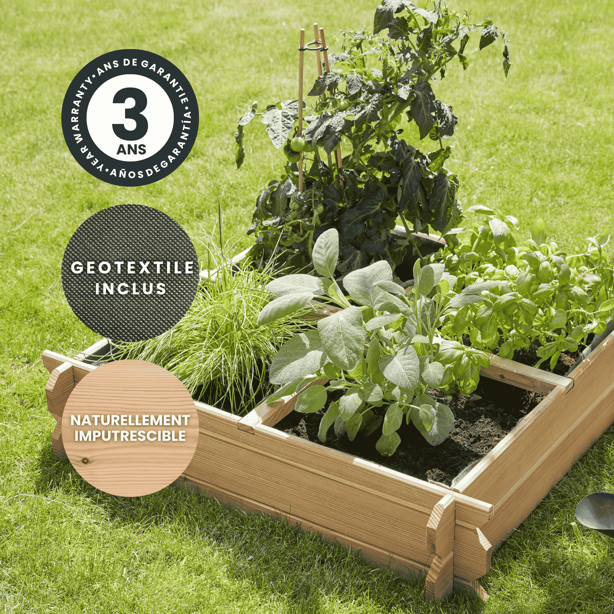 Le carré potager FREYA en mélèze de Cerland est une solution idéale pour cultiver vos fruits, légumes et herbes aromatiques de manière écologique. Fabriqué en mélèze, un bois naturellement imputrescible, il ne nécessite aucun traitement supplémentaire et peut être installé immédiatement dans votre jardin ou sur votre terrasse.