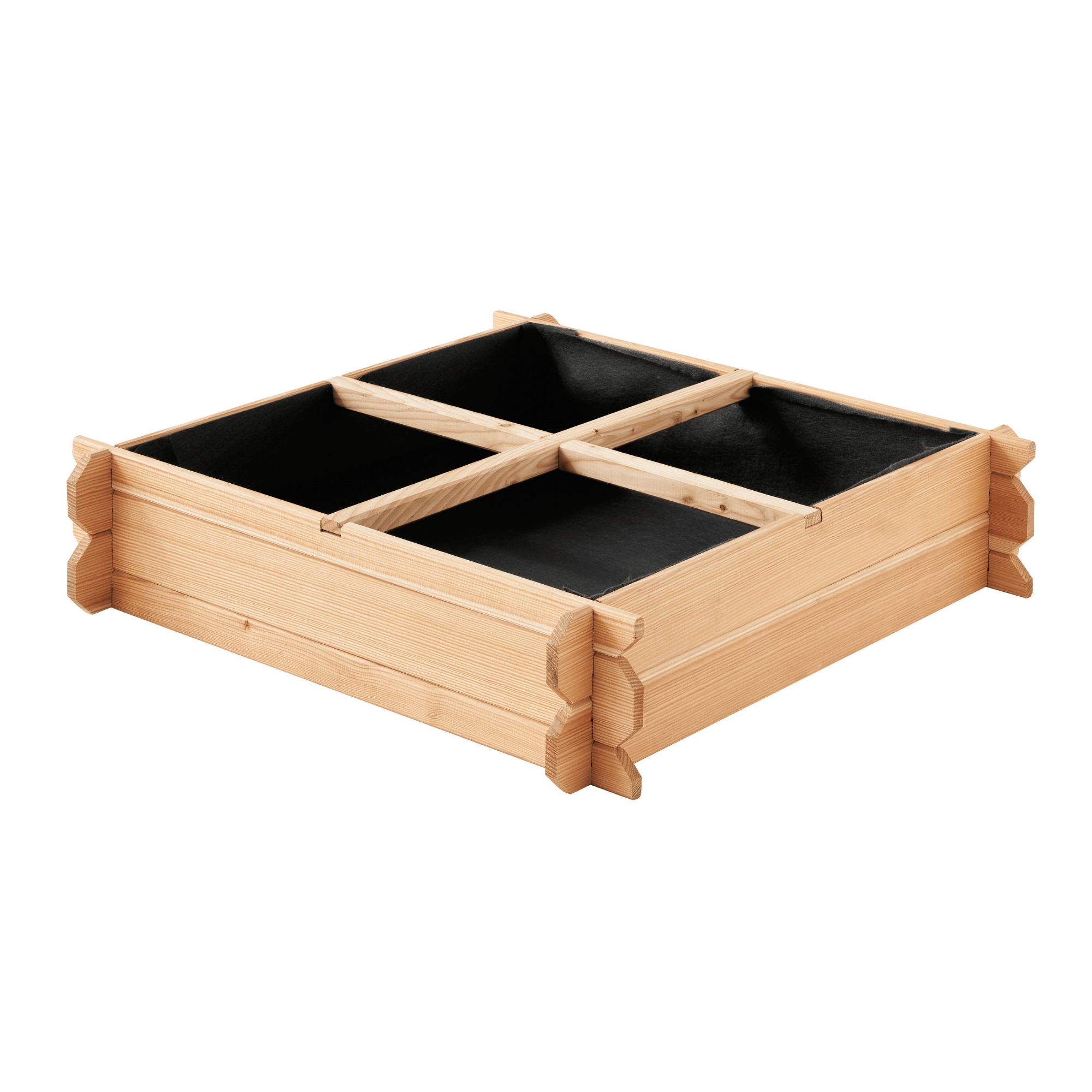 Avec une capacité de 115 litres et ses quatre espaces distincts, ce carré potager permet d’optimiser la culture en séparant facilement vos différentes plantations. Ses lignes fines légèrement rosées apportent une touche esthétique raffinée, faisant de ce potager un véritable élément décoratif en plus d’un support pratique pour vos cultures.