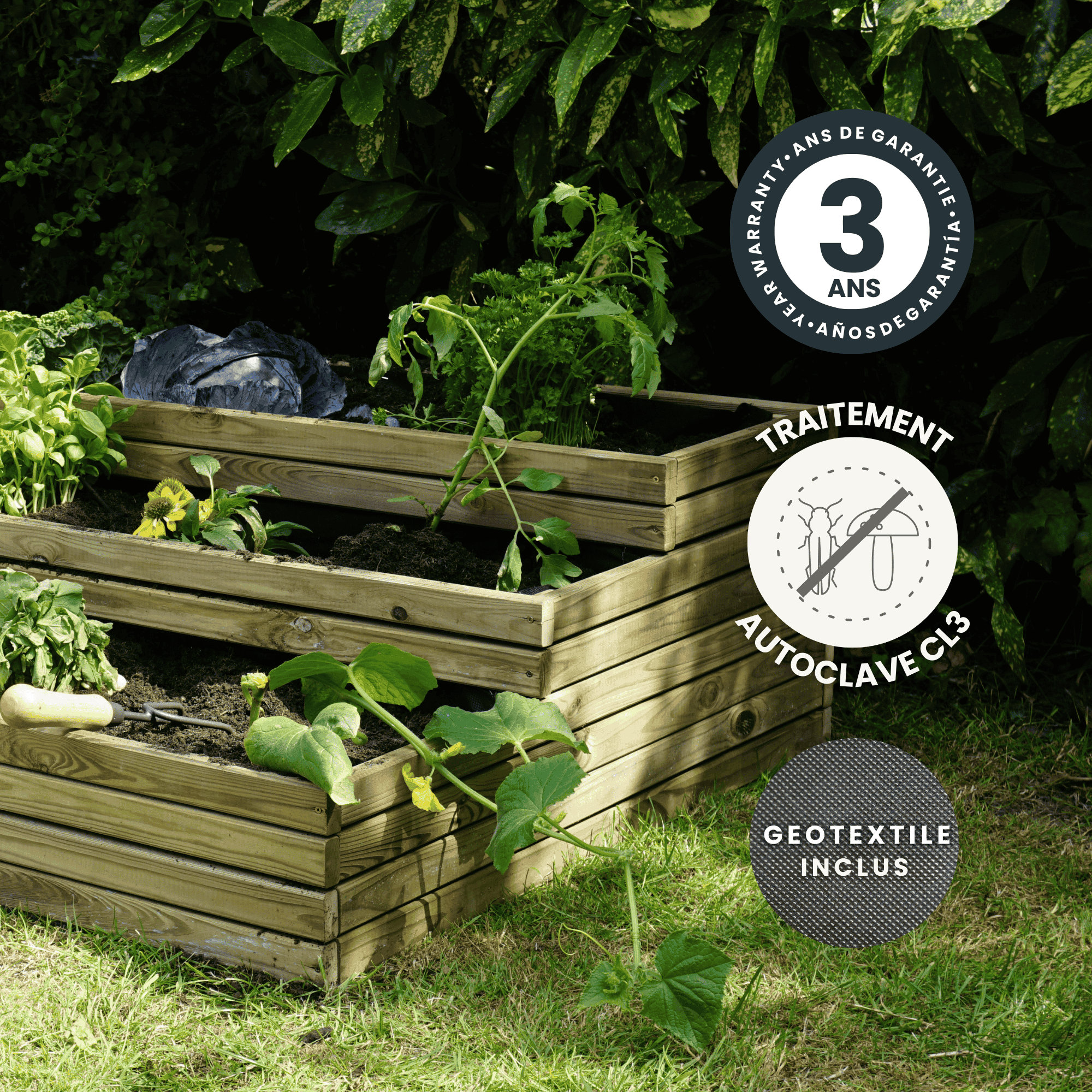 - Carré potager en escalier, idéal pour petits et grands espaces