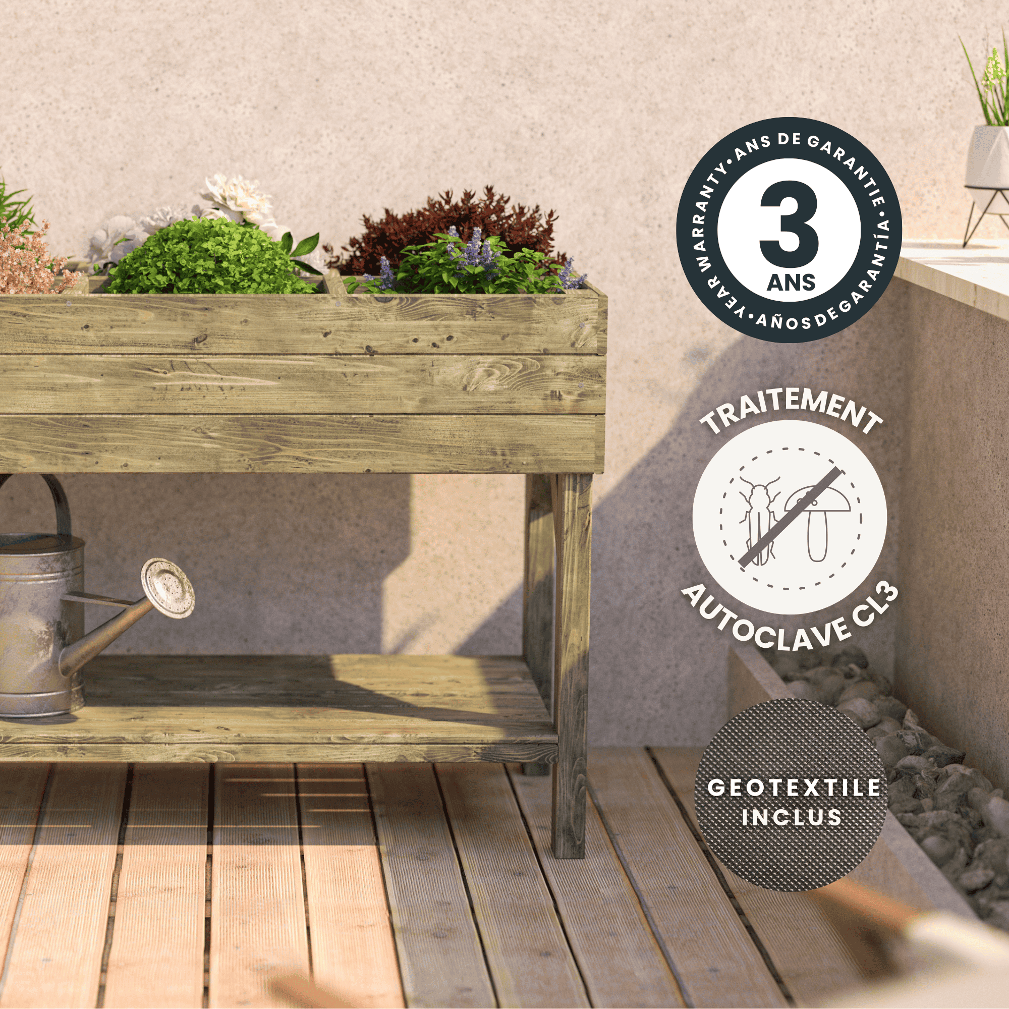 Le carré potager surélevé PAPRIKA 110L de Cerland est une solution pratique pour cultiver facilement légumes, herbes aromatiques et fleurs sur terrasses, balcons ou jardins, tout en bénéficiant d’un confort optimal pour le dos et les genoux grâce à sa culture surélevée. Avec ses 6 espaces distincts, il permet d’organiser vos plantations de manière efficace et de séparer les cultures selon leurs besoins, tout en offrant un meilleur contrôle de la qualité du sol et en réduisant les mauvaises herbes. Sa structure en pin sylvestre certifié PEFC et traité autoclave classe 3 vert assure une résistance maximale aux intempéries, aux insectes et aux champignons, garantissant une longévité optimale pour une utilisation extérieure durable. Facile à assembler, le PAPRIKA 110L s’installe rapidement même pour les jardiniers débutants, et il est livré avec un géotextile inclus pour favoriser le drainage et limiter la pousse des mauvaises herbes. Combinant praticité, robustesse et respect de l’environnement, ce carré potager offre une solution complète pour un jardinage hors-sol confortable, organisé et écologique.