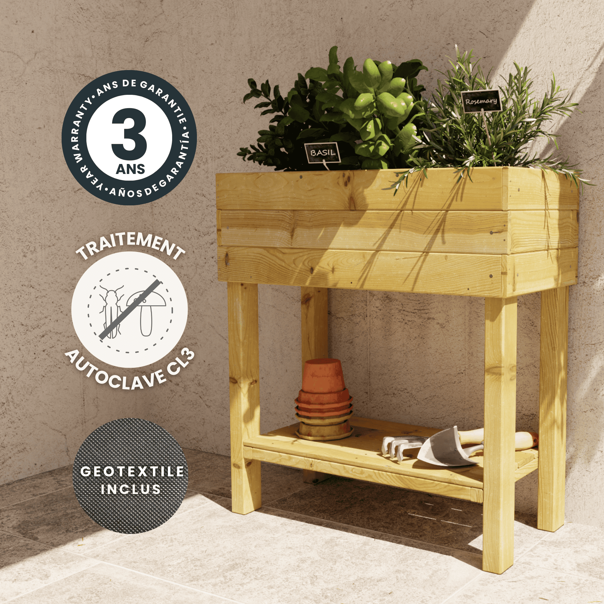Le carré potager surélevé PAPRIKA 50L de Cerland est une solution idéale pour cultiver légumes, herbes aromatiques et fleurs sur terrasses, balcons ou jardins, tout en bénéficiant d’un confort optimal pour le dos et les genoux grâce à sa culture surélevée. Sa forme rectangulaire et large permet de le positionner facilement dans différents espaces et il est équipé d’une planche pratique pour poser outils et accessoires de jardinage. La culture surélevée offre un meilleur contrôle de la qualité du sol, limite le compactage, réduit l’entretien en minimisant les mauvaises herbes et protège les plantations contre les nuisibles tels que les limaces. Fabriqué en pin sylvestre traité autoclave classe 3 vert, ce carré potager est résistant aux intempéries et aux attaques d’insectes, garantissant une durabilité optimale. De plus, le bois est certifié PEFC, attestant qu’il provient de forêts gérées durablement, pour un jardinage écoresponsable. Facile à installer, il s’assemble rapidement, même pour les débutants, avec des instructions disponibles sur la chaîne YouTube de Cerland. Avec son design pratique et sa structure robuste, le PAPRIKA 50L offre une solution compacte, fonctionnelle et écologique pour un jardinage hors-sol confortable et organisé.
