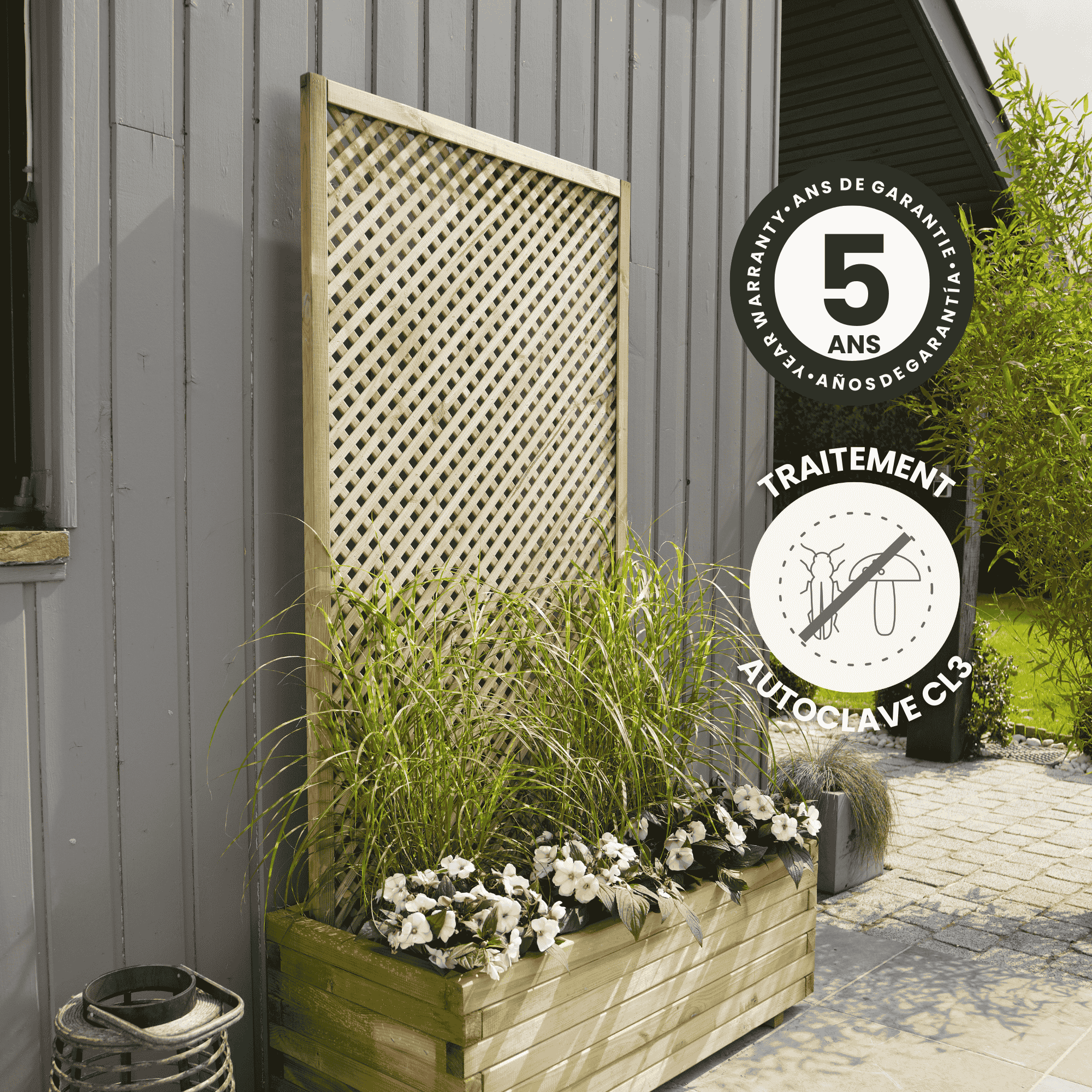 Fabriqué en pin sylvestre issu de forêts gérées durablement, ce treillis bénéficie d’un traitement autoclave de classe 3 vert qui le protège efficacement contre l’humidité, les champignons et les insectes xylophages. Facile à installer, il peut être fixé contre un mur, monté sur des poteaux ou placé derrière un bac à fleurs. Ce treillis combine ainsi praticité, robustesse et respect de l’environnement.