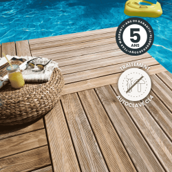 À la croisée de l'esthétique sophistiquée et de la durabilité, nos dalles de terrasse en bois résineux haut de gamme sont la pièce maîtresse parfaite pour sublimer votre espace extérieur. Conçues pour répondre aux besoins les plus exigeants et pour résister aux conditions les plus extrêmes, nos lames et dalles sont faciles à installer et constituent une solution de choix pour rénover ou créer votre terrasse. Disponibles dans une variété de couleurs naturelles qui s'harmonisent parfaitement avec l'environnement de votre jardin, nos produits allient la beauté intemporelle du bois à une classe exceptionnelle. En plus de leur aspect esthétique, nos dalles de terrasse bénéficient d'un entretien facile, assurant ainsi la longévité de votre espace extérieur sans compromis sur la qualité.