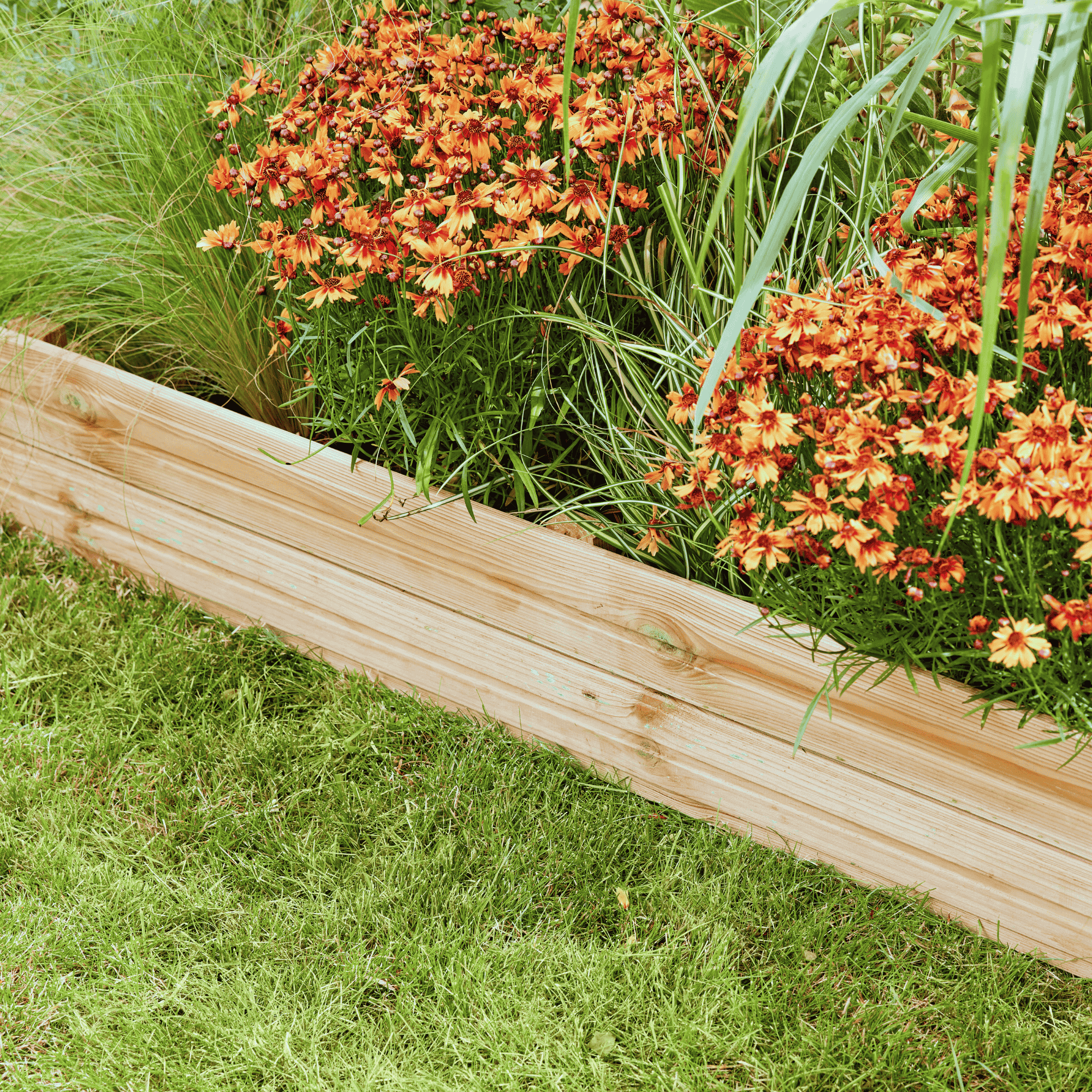 Conçue en pin sylvestre traité autoclave classe 3 vert, la bordure MERINA est pensée pour résister aux intempéries et conserver son apparence soignée au fil du temps. Ses lignes horizontales sobres et élégantes offrent une délimitation nette des allées, massifs ou zones de gazon, renforçant l’organisation visuelle de votre extérieur.
