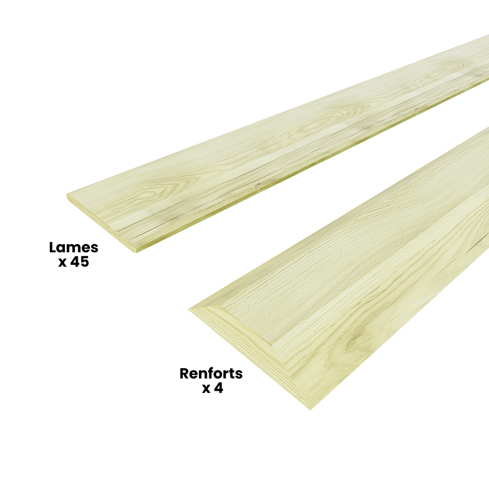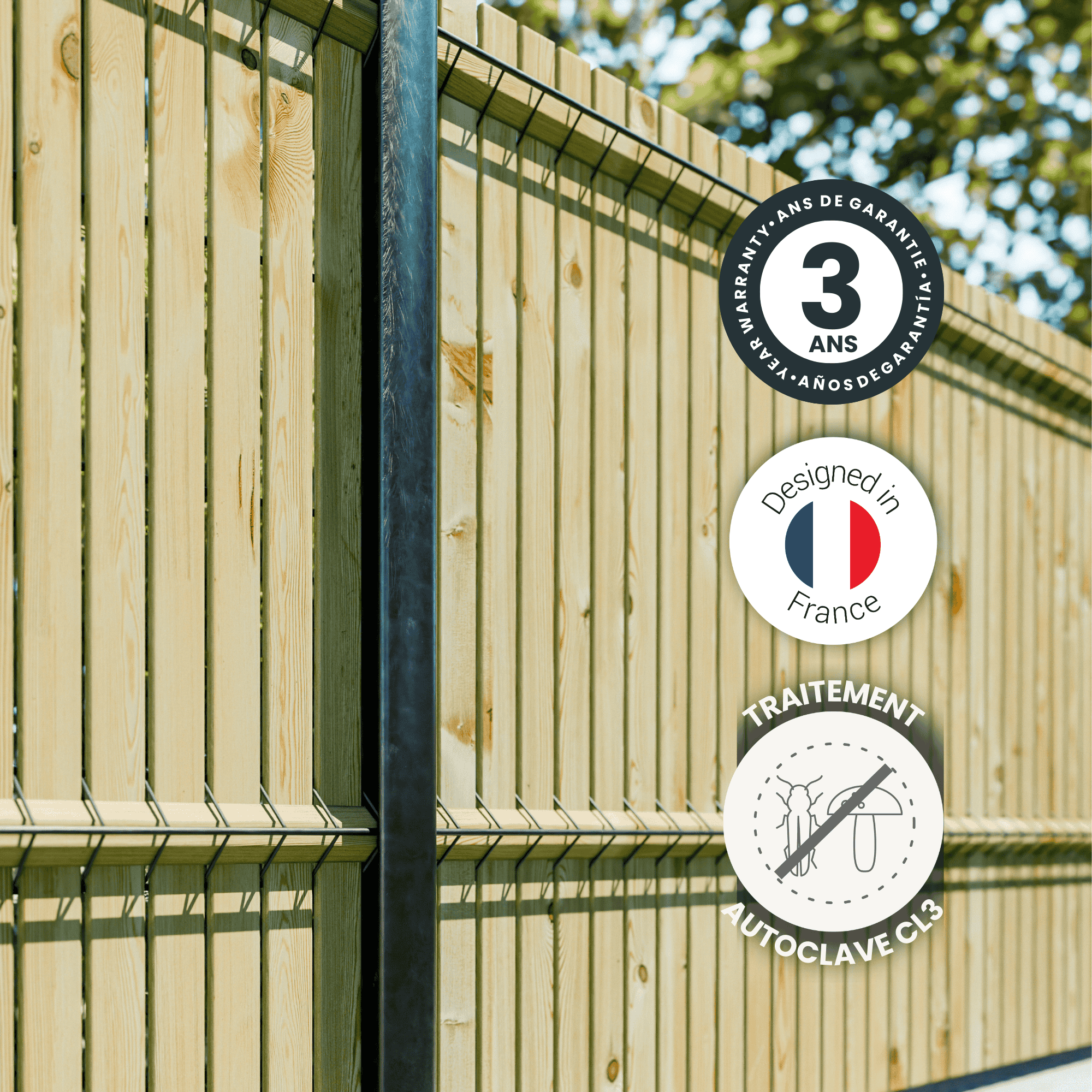 Fabriquées en bois de pin traité autoclave classe 3, ces lames résistent efficacement à l’humidité, aux champignons et aux insectes. Elles conviennent idéalement à une exposition extérieure modérée, tout en garantissant une bonne tenue dans le temps.